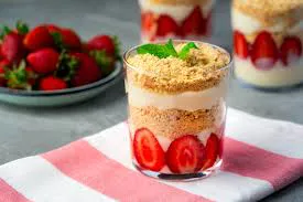 Taze çilek, vanilyalı puding ve hafif kremayla hazırlanan lezzetli tatlı.