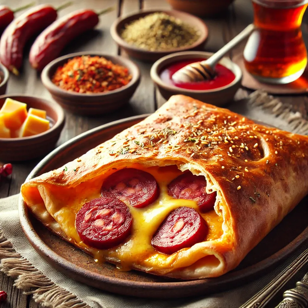 Sucuk ve erimiş kaşar peyniriyle dolu, çıtır çıtır gözleme.