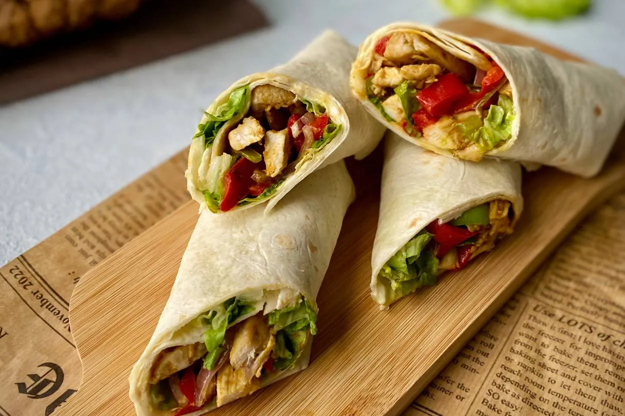 Izgara tavuk, taze sebzeler ve özel soslarla sarılmış lezzetli wrap.